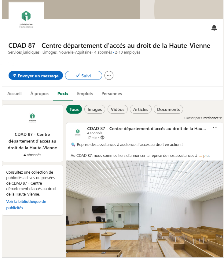 Le CDAD 87 lance son compte LinkedIn pour renforcer sa communication et promouvoir l’accès au droit.